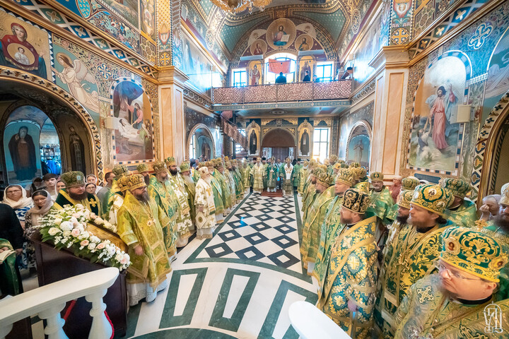 The Primate celebrated the Divine Liturgy in the Church of Venerable Agapitus of the Caves. Concelebrating with His Beatitude were: Metropolitan Meletiy of Chernivtsi and Bukovyna, Chairman of the UOC Department for External Church Relations; Metropolitan Anthony of Boryspil and Brovary, Chancellor of the UOC; Metropolitan Clement of Nizhyn and Pryluky, Chairman of the Information and Education Department of the UOC; hierarchs; clergy of the Lavra; and guest clergy.