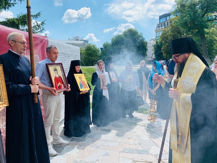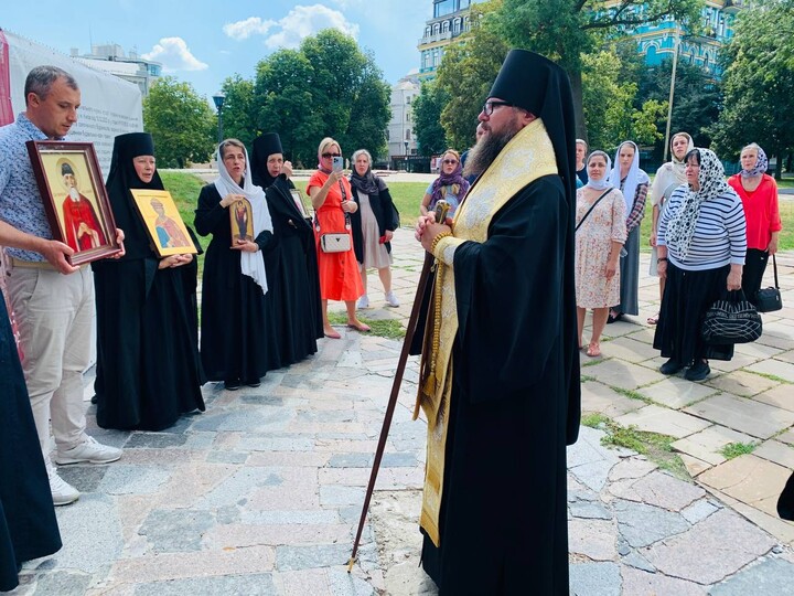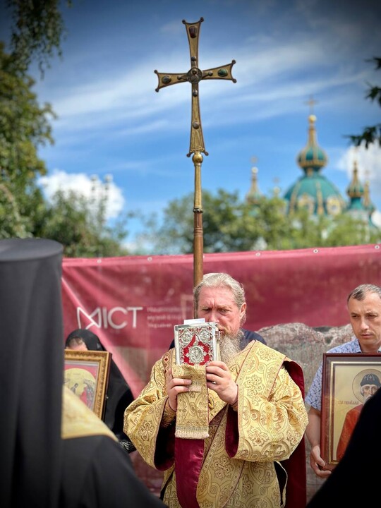 On the day of the memory of the Holy Equal-to-the-Apostles Prince Volodymyr and the 1036th anniversary of the Baptism of Rus, after the service in the Tithe Monastery in Kyiv, the brethren of the monastery, led by the abbot Bishop Kliment of Borovka, prayed at the site of the destroyed St. Volodymyr and Olga Church. This was reported on the monastery's Telegram channel.