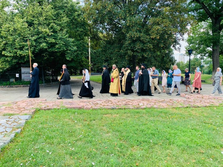 The clergy, along with parishioners, held a procession to the site of the destroyed shrine, where they performed a prayer service in honor of the patronal feast.