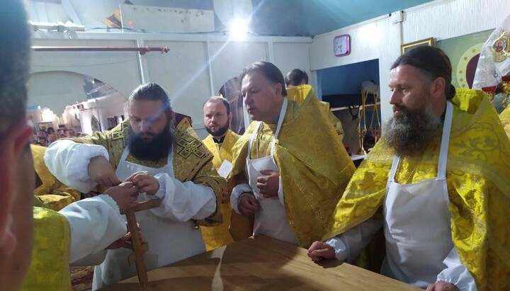 At the Small Entrance, the rector of the church, Archpriest Alexander Stetsiuk, was awarded the right to wear a cross with decorations.