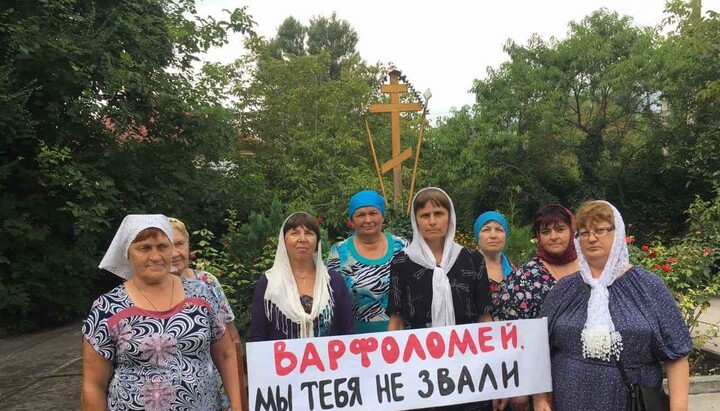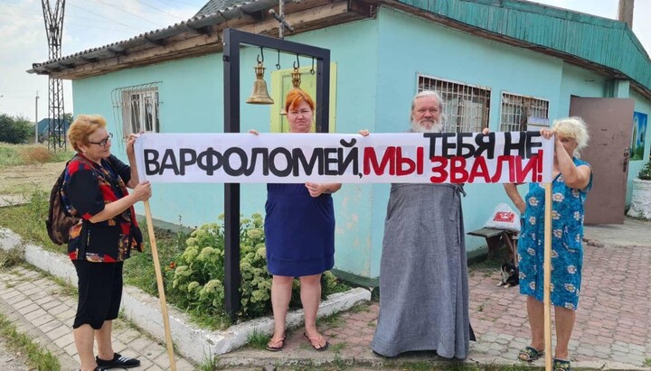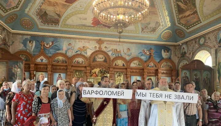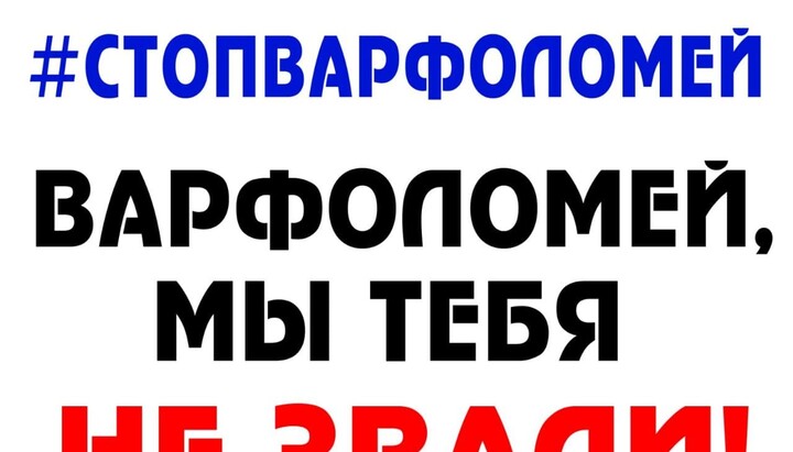 Parishes are photographed with posters “Bartholomew, We Didn't Call You” with the photos published on social networks, adding the hashtag #СТОПВАРФОЛОМЕЙ (STOPBARTHOLOMEW – Trans.).