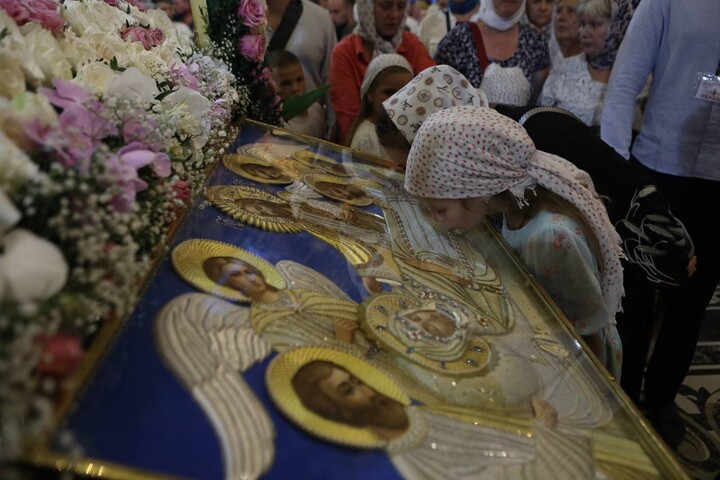 During Matins, the faithful who had come to the Lavra for the celebrations had the opportunity to venerate the icon of the Mother of God. Priests anointed them with holy oil.