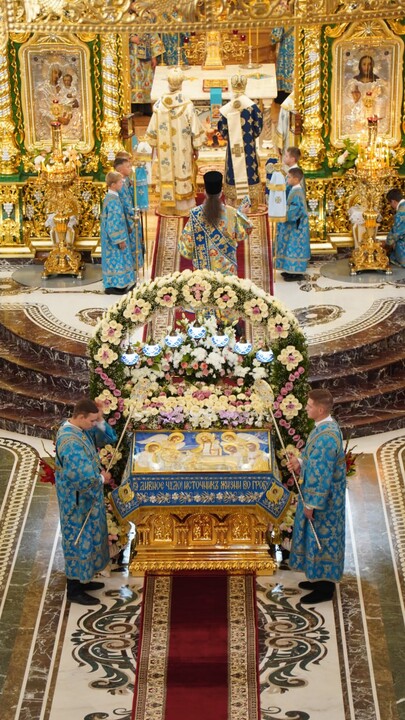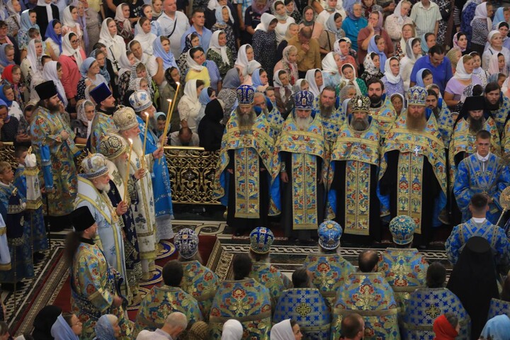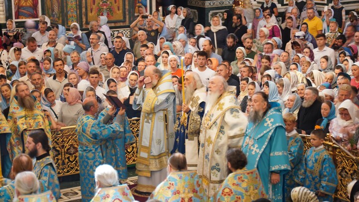 The festivities for the patronal feast began on the morning of August 27. After the late liturgy, a procession with the icon of the Mother of God took place from the Dormition Cathedral to the Transfiguration Cathedral.