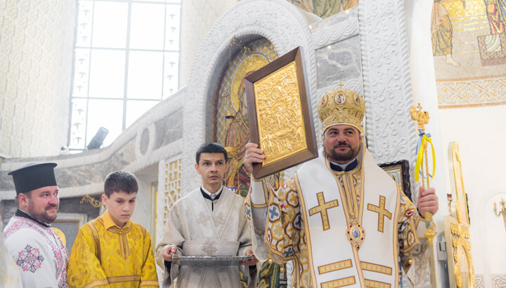 On Monday, August 23, monks from the Athonite monasteries Pantokratoros and Xenophontos concelebrated with "Metropolitan of Pereyaslav and Vishneve" Alexander Drabinko at the Transfiguration Cathedral in Teremki, Kyiv, as reported on the Facebook page of the OCU temple.