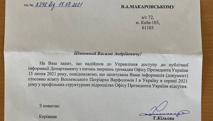 The organization published the responses of the Office of the President and the Verkhovna Rada Administration to its inquiries about the program of the Phanar head’s visit to Ukraine and the planned meetings with Vladimir Zelensky and the leadership of the Verkhovna Rada.