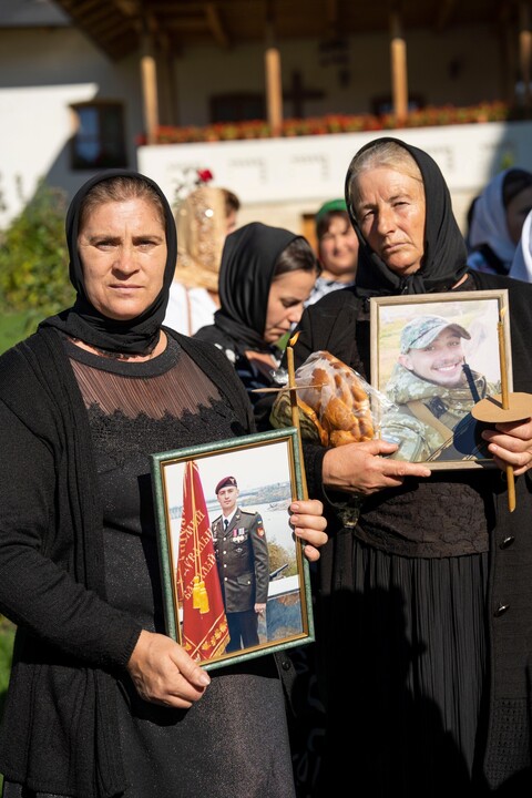The service was led by Archimandrite Melchisedek (Melnyk), the abbot of the monastery. He was joined by priests of the Suceava-Rădăuți Diocese of the Romanian Orthodox Church and clergy of the Chernivtsi-Bukovyna Diocese of the UOC. The service was attended by relatives of the fallen soldiers, Romanian diplomatic representatives from Chernivtsi, and Bukovynian intelligentsia.