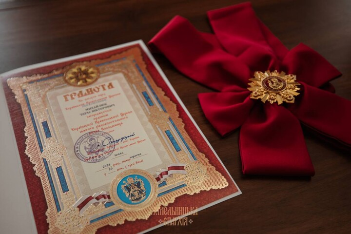 On October 2, 2024, Metropolitan Victor of Khmelnytskyi and Starokostiantyniv presented the Ukrainian Orthodox Church’s Order of Saint Equal-to-the-Apostles Prince Volodymyr, 1st degree, to Lieutenant Colonel Taras Mykhailyuk of the Ukrainian Armed Forces, according to the press service of the Khmelnytskyi Eparchy.
