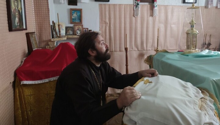 The school building, converted into a temple, is old and dilapidated. But the rector, Archpriest Artemy Mishchenko, shows it with pride and tells how much is done here by parishioners. The believers repaired the ceiling, which almost immediately fell, purchased and installed a stove for heating. There is no electricity in the room, and so that one could read, small lamps powered by solar panels were installed in the altar and above the choir. But there is still not enough light in the temple, and it is especially difficult in winter. On the festive all-night Christmas and Easter vigils, parishioners bring a gasoline generator – then the temple is fully illuminated.