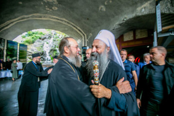 The rite of the enthronement of the newly elected Metropolitan Joanikije was headed by His Holiness Patriarch Porfirije of Serbia, concelebrated by the newly elected Metropolitan Joanikije of Montenegro and the Littoral, a member of the Holy Synod of the SOC, Bishop David (Perovic) of Krushevak, clerics, and monks of the monastery.
