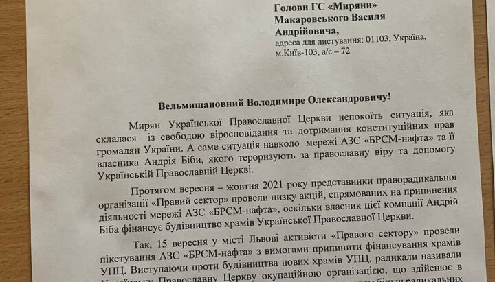 The reason for the appeal was the recent events in the Lviv region, where representatives of the "Right Sector" oppose the construction of new churches of the UOC, intended to replace the seized ones, and threaten the benefactors who assist in this matter. Radicals threaten with organizaing new actions, and believers see this as an attempt to inflame sectarian strife.