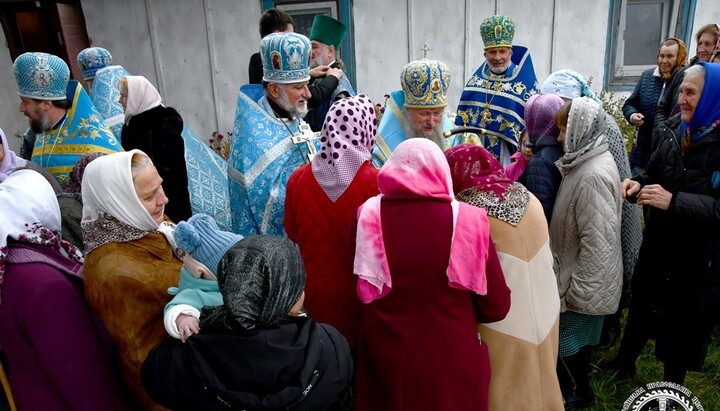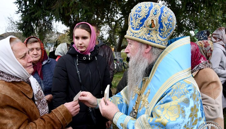 The service ended with the rite of glorification of the Virgin in front of the icon of the patronal feast. Vladyka addressed the believers with a sermon. The archpastor supported the parishioners and thanked them for remaining faithful to the canonical Ukrainian Orthodox Church.