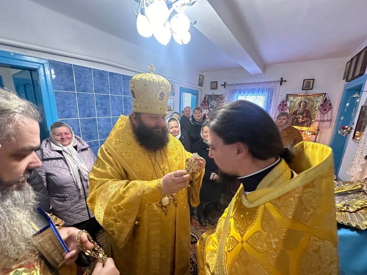 During the service, the archbishop awarded the parish priest, Archpriest Vladyslav Basiuk, with a decorated cross, recognizing his steadfastness and loyalty to the Church, especially during the occupation in Kherson region.
