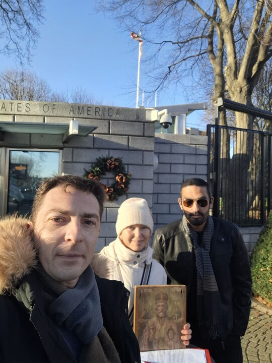 Orthodox Christians held a picket at the U.S. Embassy in Dublin.