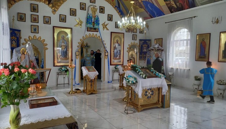 The temple was built within 9 months after the start of work. After the consecration of the throne and the new church, Metropolitan Vladimir, concelebrated by the clergy of the eparchy, performed the Divine Liturgy. The bishop congratulated the parishioners and the rector of the Church of the Nativity of the Most Holy Theotokos, Archpriest Anatoly Matselik, on the important event, and also gave church awards to the patrons and those parishioners that were actively involved in the construction.