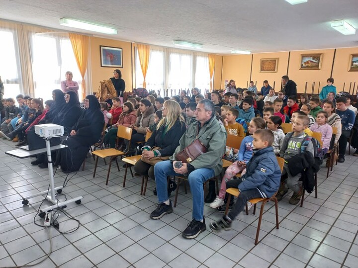 Сестринство манастира Жиче поклонило је свим ученицима симболичне поклоне, магнетe и обележиваче за књиге, на којима су исписане молитве пре и после учења.