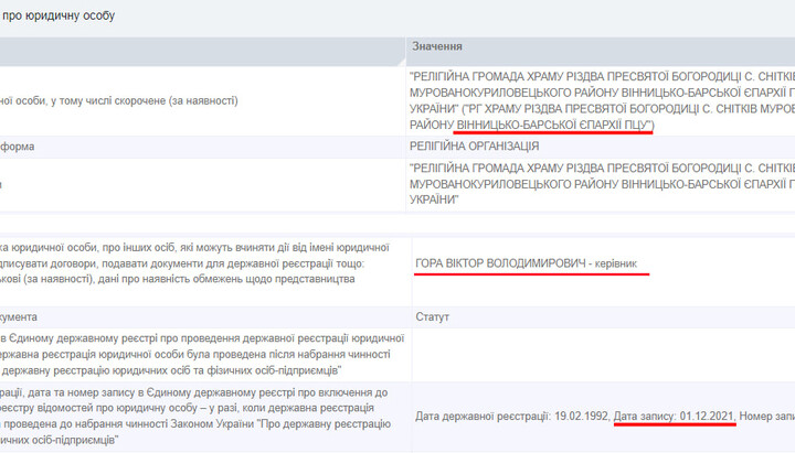 Furthermore, according to the community of the UOC church, the head of the religious organization of the OCU in Snitkiv village, which the head of the Department of Religious Affairs of the Vinnytsia Regional State Administration Igor Saletskiy registered on December 7, turns out not a priest but a local businessman who "has never been to the church either at his place of residence or at his place of work."