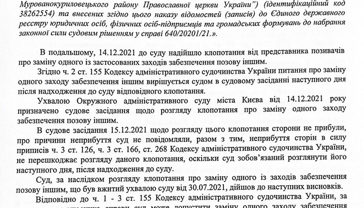 On December 15, the Kyiv Court officially prohibited the Vinnytsia RSA officials from illegally re-registering the communities of the UOC in the OCU.