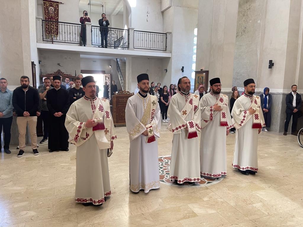 Светом Евхаристијом началствовао је секретар просветног одбора јеромонах Сергије Радивојевић док су му саслуживали координатори верске наставе архијерејских намесништва епархије крушевачке, као и вероучитељи који су у свештеничком и ђаконском чину.