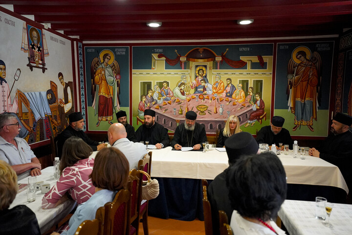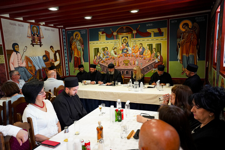 По завршетку састанка, Владика Исихије је са гостима обишао музеј у изградњи посвећен Светом Владици Николају.