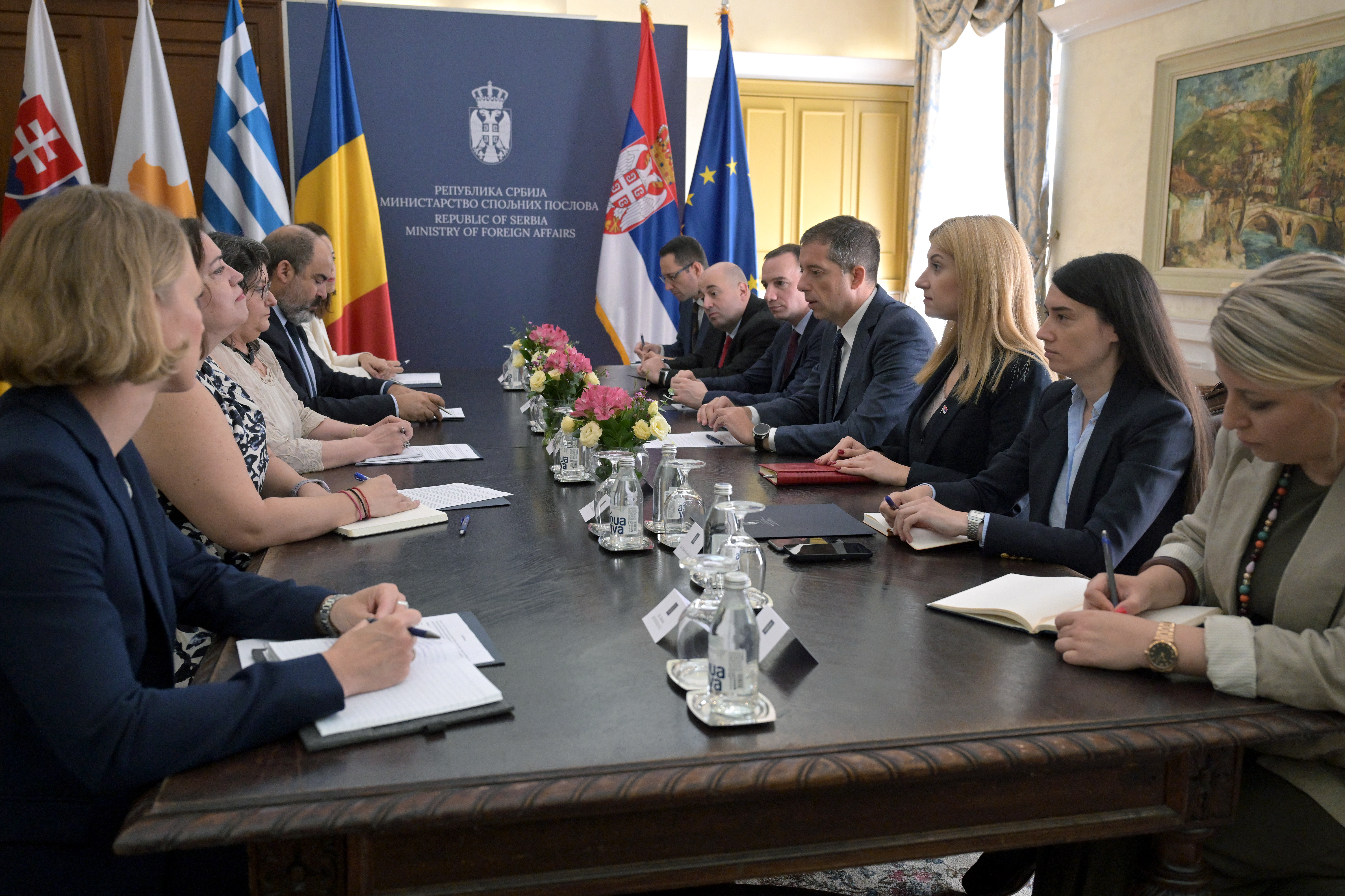 На састанку с амбасадорима Грчке, Кипра, Румуније, као и отправником послова Амбасаде Словачке, те дипломатским представником Амбасаде Шпаније, министар Ђурић је захвалио на поштовању територијалног интегритета и суверенитета Србије и принципијелној политици уважавања међународног права и повеље УН, истиче се у саопштењу МИП-а Србије с овог састанка.
