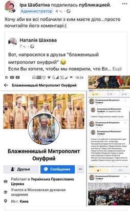 A fake page created on Facebook on behalf of Metropolitan Onuphry.