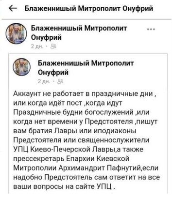 The unknowns who created the page made a spelling mistake even in its title, misspelling the word "Beatitude". Otherwise, the authors are trying to style the page as a real account of the Primate of the UOC, but in the comments they often lapse into outright provocations and blasphemy.
