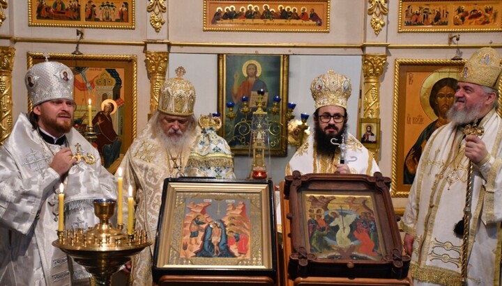 The bishops were concelebrated by Archpriest Sergey Yurin, Secretary of the Argentine Diocese of the Russian Orthodox Church, and Priest Alexei Lysenko, rector of the church in honor of St. Job of Pochaev in the city of San Martin. After the dismissal of the liturgy, the glorification of the Epiphany Feast took place, followed by a prayer read to St. Theophan, the hermit of Vysha, read aloud by Bishop Kirill.