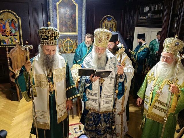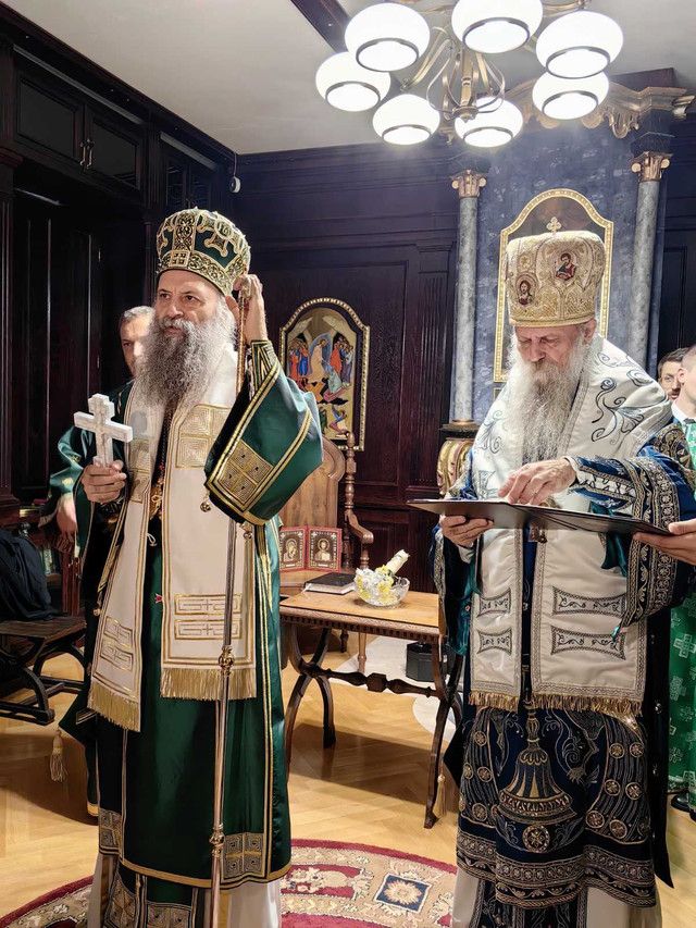 Патријарху Порфирију саслуживали су бројни архијереји СПЦ у земљи и расејању, а ту су били и архијереји из Архиепископије атинске, Јерусалимске Патријаршије и Православне Цркве Чешке и Словачке. То је догађају дало нарочиту тежину, како духовну, тако и историјску тежину.