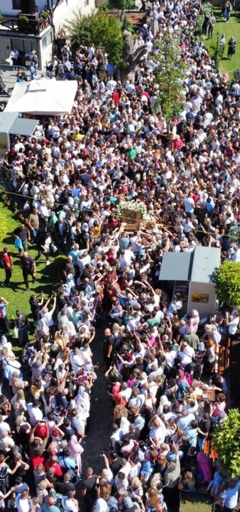 После Свете Литургије служен је молебан са освећењем воде, а свечана литија завршена је кропљењем окупљених. На благослов су подељени освећени листићи ловора и маслине, као и латице ружа.