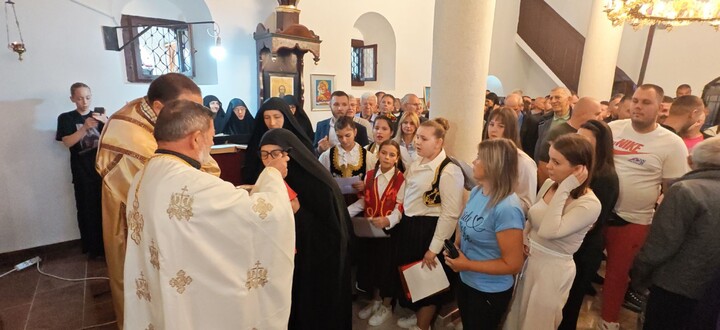 Након Свете Литургије уследио је свечани опход око храма и сечење славског колача.