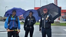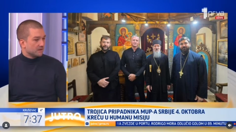 Страхиња Бјелић, Владимир Пенезић и Марко Маринковић симболично су кренули из Храма Светог Саве у Београду, с благословом Владике милешевског Атанасија. На Хиландар би требало да стигну за двадесет дана.