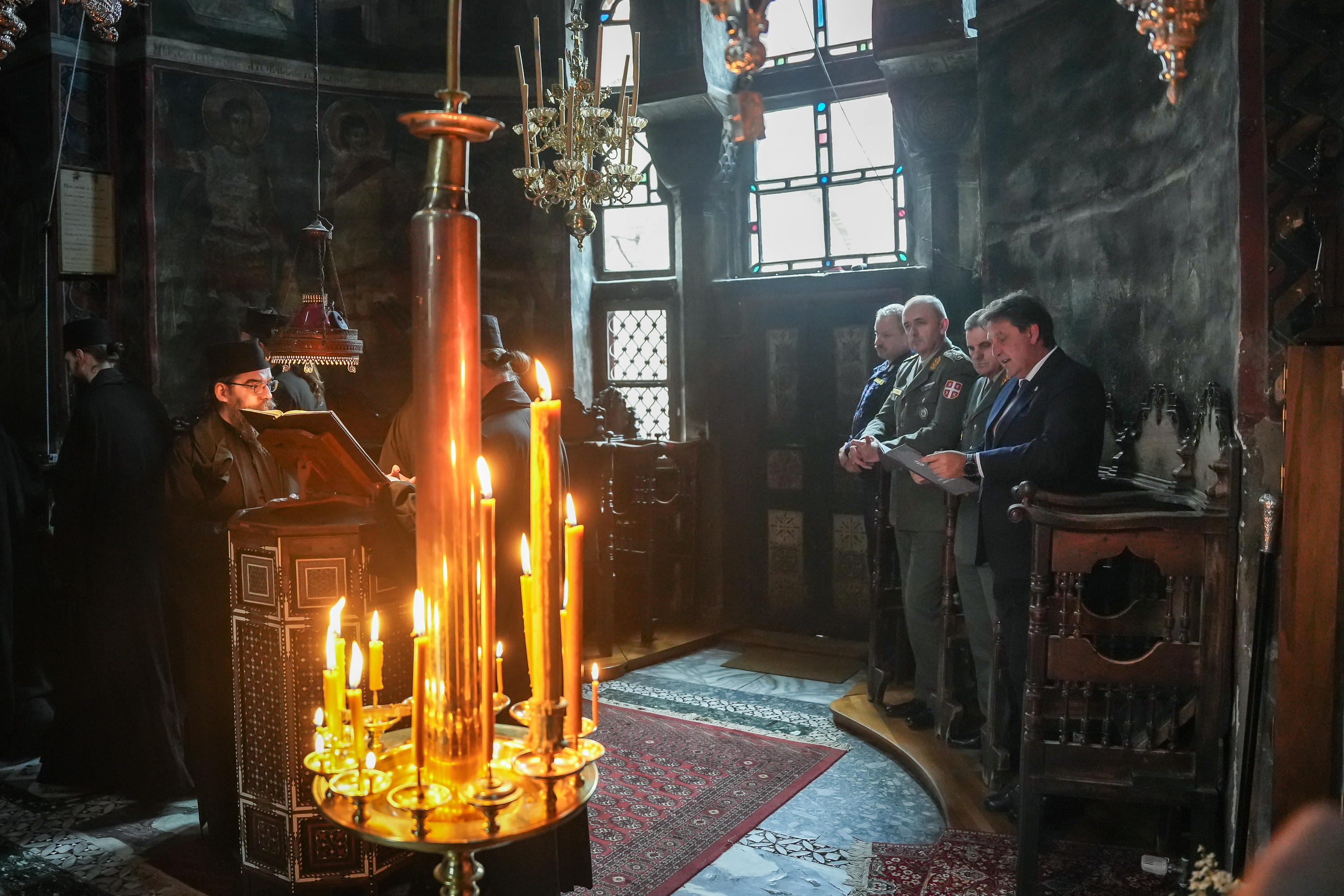Министар одбране Србије Братислав Гашић боравио је са члановима колегијума и представницима војног свештенства у манастиру Хиландар. Тамо је присуствовао Светој Литургији коју је служио Епископ липљански и војни Доситеј уз саслужење свештенства и ђакона.