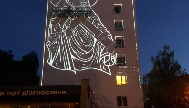 Already at this stage, one can see the similarity of the mural with the Orthodox icon. Most likely, in its final form, the image of the “Saint Javelin” will appear on the building – a drawing by Canadian marketer Christian Boris.