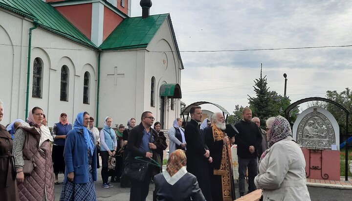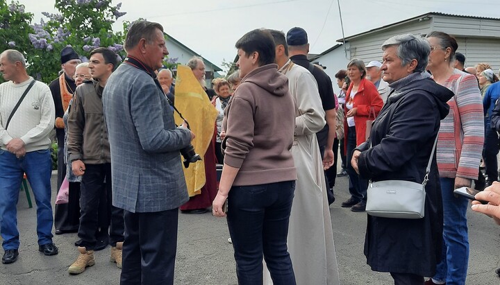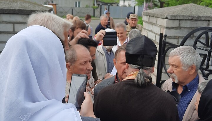 Further, having cut off the locks with a grinder, "overjoyed atheists without a cross around their necks," shouting slogans and words towards the UOC believers and the priest, stormed into the church, desecrating the altar and the throne with their hands.