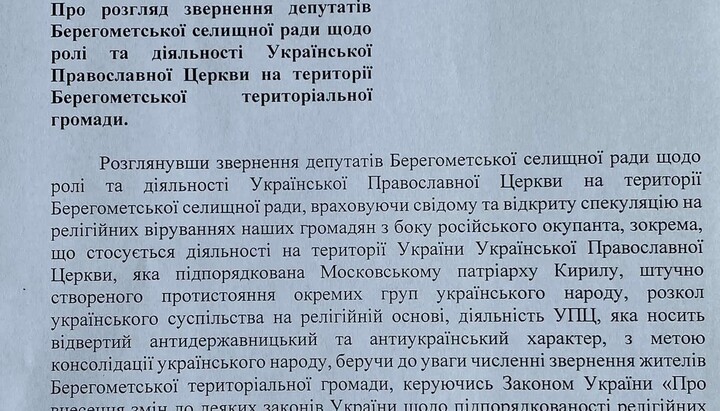 Deputies of Berehomet town in the Chernivtsi region expect Zelensky and the Verkhovna Rada to adopt a law on the forced transfer of UOC communities to the OCU.