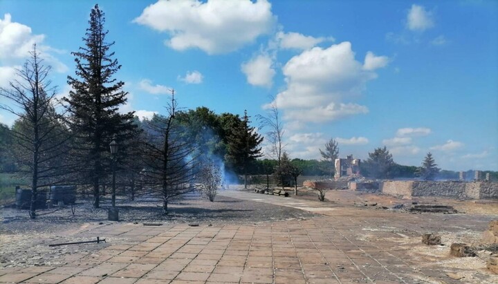 The first photos were published on Facebook after the fire had destroyed the All Saints Skete of the Sviatogorsk Lavra in the Donetsk region.