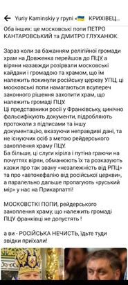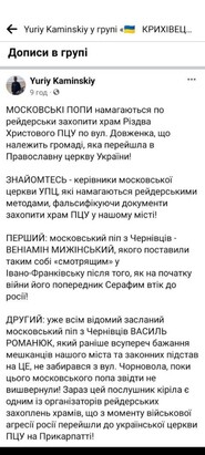"I announce a reward of 5 thousand hryvnias for copies of those lists (upd. + another 5 thousand from Artem Vakaluk). The community must know latent collaborators community in the face. And again ... Once again, I repeat: the activities of the FSB branch (Moscow Patriarchate) have nothing to do with the freedom of religion. Let alone the Church and faith," Dmytryk wrote.