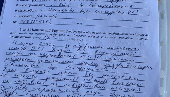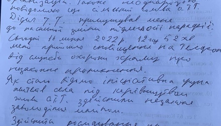 Representatives of the OCU threatened Father Serhiy and mockingly tried to hand him a summons to the military enlistment office. They told the priest that from now on he has nothing to do with the church, which he built with his own hands and whose parish he has been leading for 27 years.