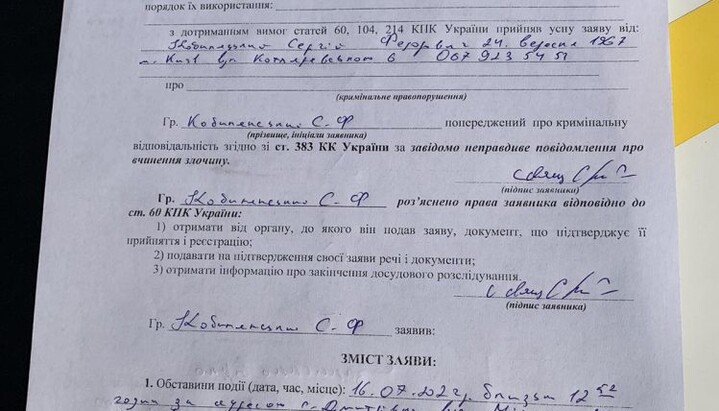 Archpriest Serhiy Kobyliatsky filed a lawsuit in court, but it was rejected due to the "lack of elements of a crime."