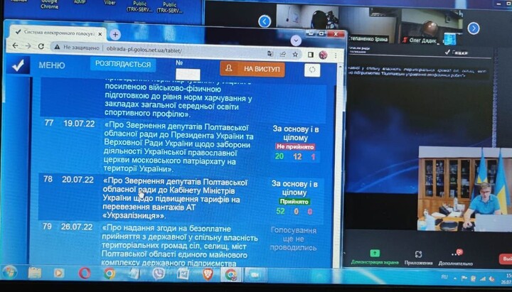 On July 26, 2022, members of the Poltava Regional Council by a majority vote rejected an appeal to the President and the Parliament to ban the Ukrainian Orthodox Church in the country, reports the “Poltavschina” website.