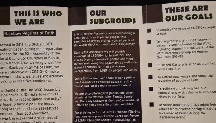 LGBT literature was handed out at the Assembly of the World Council of Churches, Metropolitan Leonid (Gorbachev), a representative of the delegation of the Russian Orthodox Church, said in his telegram channel.