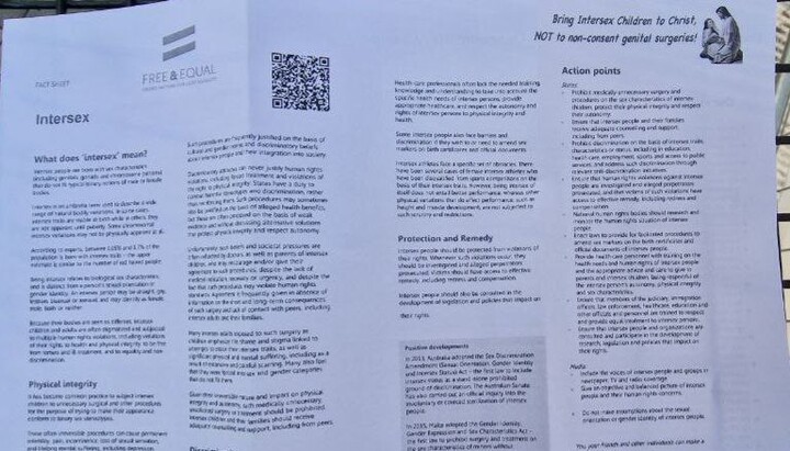 Materials promoting LGBT people were handed out in front of the entrance to the complex hosting the WCC events.