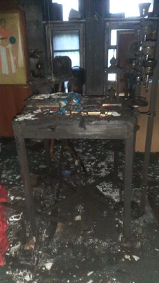 The criminals broke into the church, took donations and the rector's pectoral cross, and set fire to the altar. The fire damaged the altar part of the church. The altar was burnt out and the church utensils were damaged.