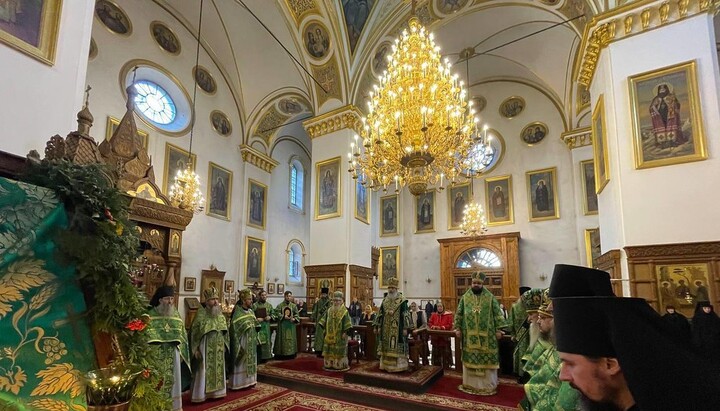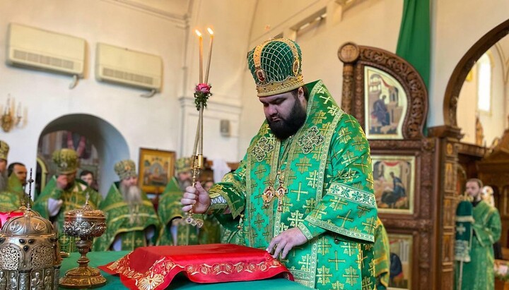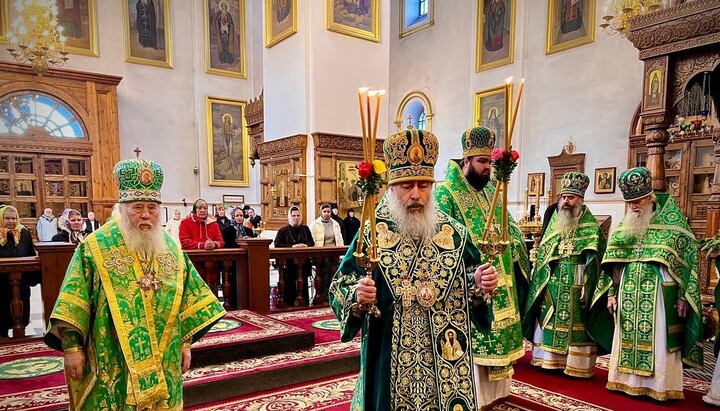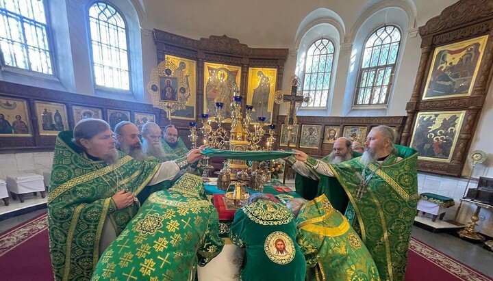The Divine Liturgy on the Commemoration Day of the Lavra Saints was officiated by Metropolitan Arseniy of Sviatogorsk, the Abbot of the Sviatogorsk Lavra, in concelebration with Bishop Paisiy of Konstantynivka, Bishop Innokentiy (Shestopal), the vicar of the Horlivka diocese, Archpriest Ioan Ustymenko, the rector of the Holy Trinity Cathedral in Kramatorsk city, as well as the clergy of the Lavra in holy orders and other clergymen.