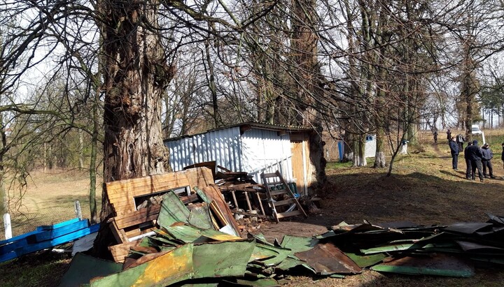 – Look what they are doing – beating the windows in the temple! a cry rose when a piece of glass fell out of the bell tower window. The parishioners were putting audio speakers before the service and damaged the glass by chance. The crowd under the temple immediately called this the "desecration of the shrine". The “committed offense” was reported to the police, and fragments of glass on the ground were shown to the “1 + 1” journalists, who immediately filmed them as evidence of the “crime”.