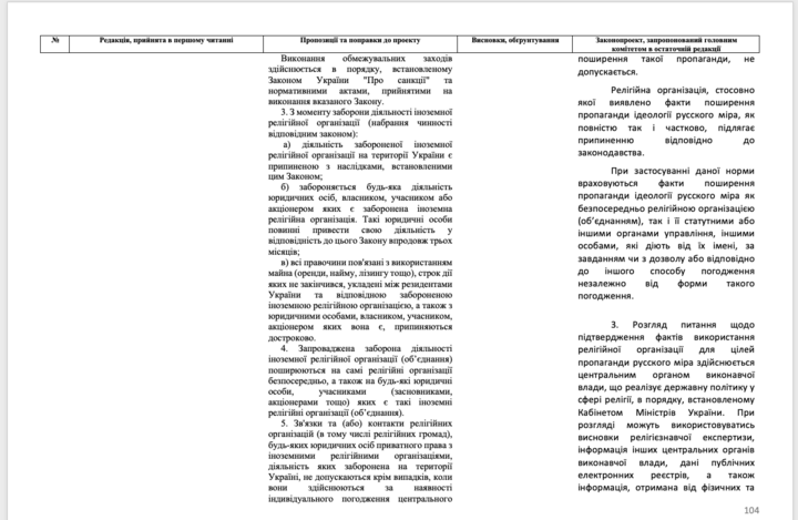 The bill proposes to amend the Code of Administrative Court Procedure of Ukraine, in particular – to introduce a new section "on the termination of a religious organization".