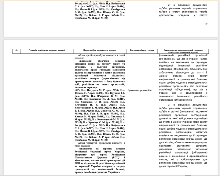 For example, Article 9 says that religious centers can be subordinate to any centers in Ukraine and abroad, except Russian ones. And it is proposed to supplement this article with the following formulation: "The state recognizes the right of religious organizations to freely change this subordination by making the corresponding changes to the charter (provision) of the religious administration. The decision to change subordination and make the corresponding changes or additions to the charter is made by the general meeting of the religious center (administration)."