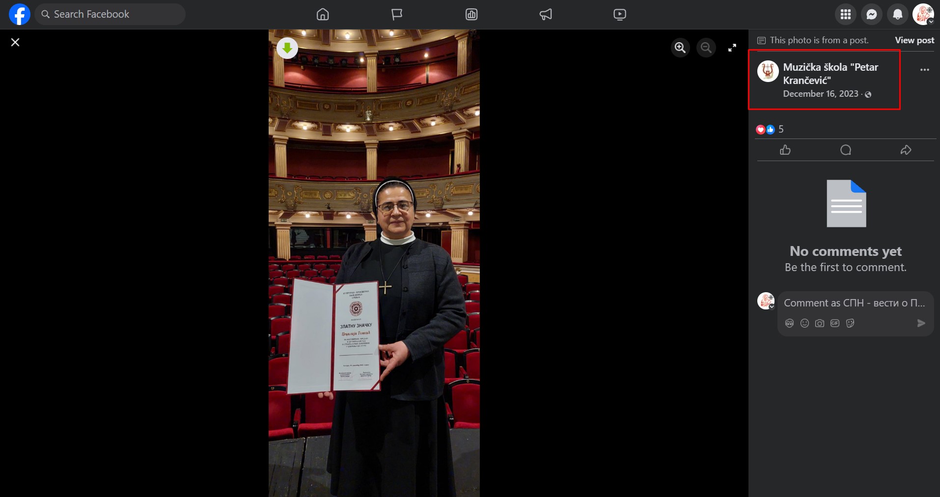 Католичка монахиња из Србије била на концерту на ком се прослављају убиства Срба